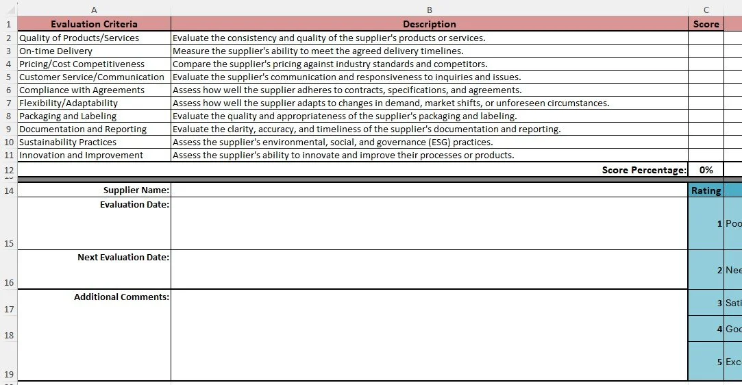 Download the Template: Access the editable Excel version of the Supplier Evaluation Form after purchase.